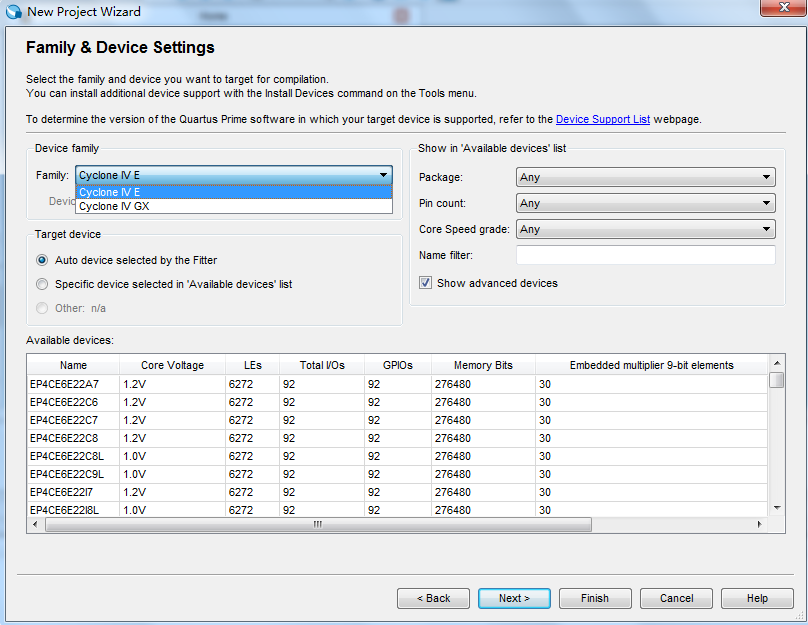 我这里选择常用的ep4ce6e22c8