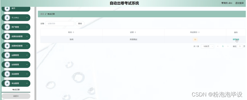 点击考试记录,用户可以查看试卷名称、姓名、考试得分等考试记录信息,如图5-7所示。