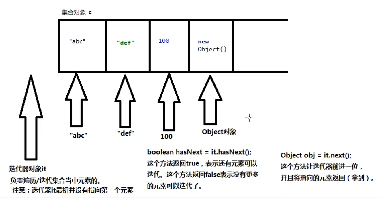 Object obj = it.next(); // 取元素,且返回的元素类型是object