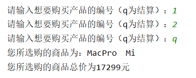 tempbox = input("请输入想要购买产品的编号(q为结算):")