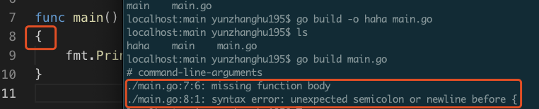 7) Go 的大括号不能换行【Java可以】