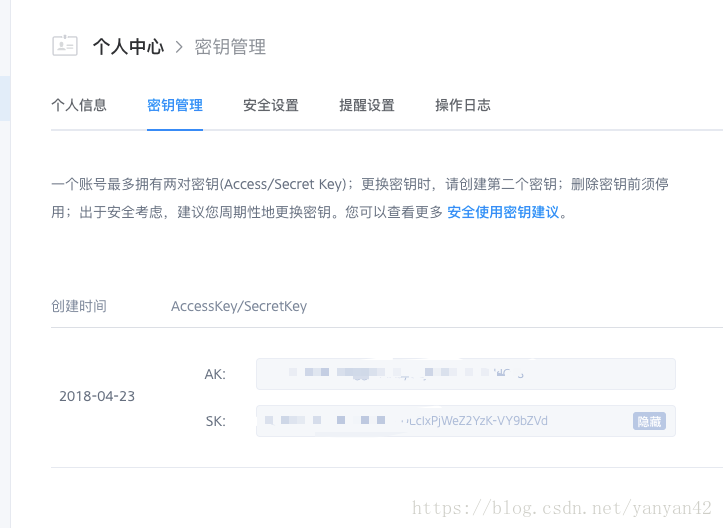 3、在个人中心获取appkey和appsecret