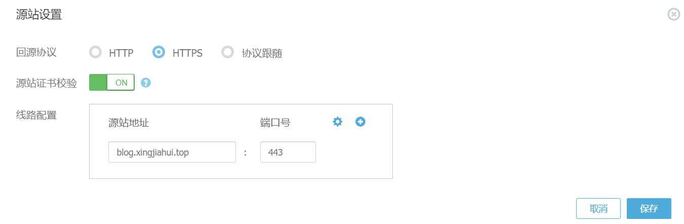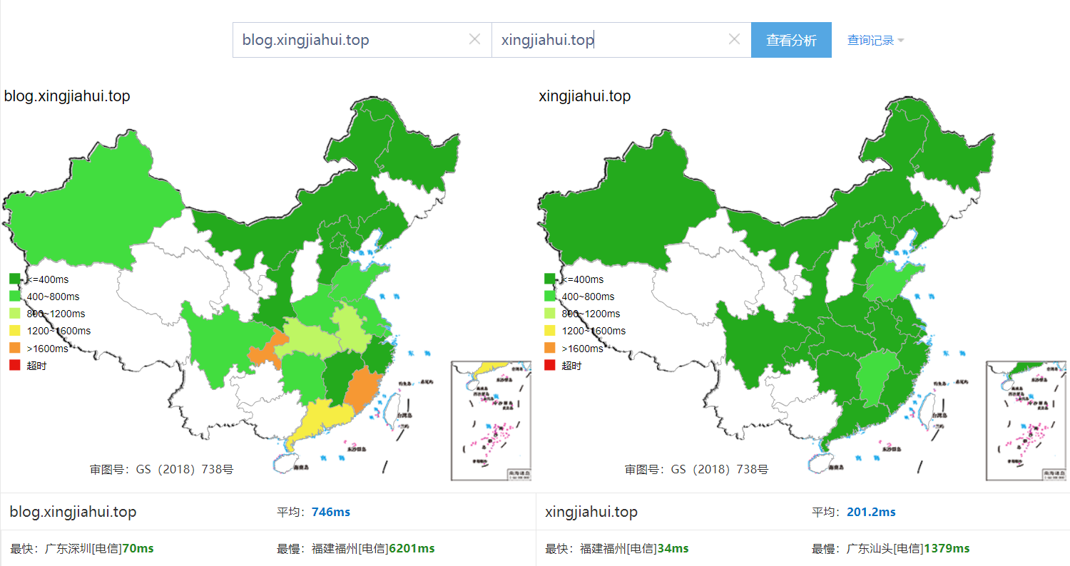 blog.xingjiahui.top为原始域名,xingjiahui.top为CDN加速域名。