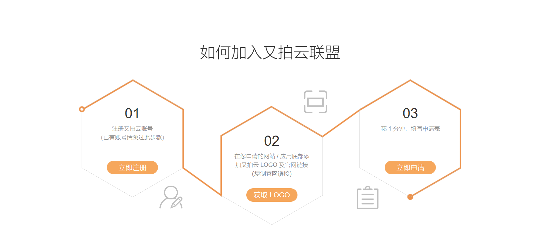 如何加入又拍云联盟,先去完成步骤01(跟着我操作,千万别急着自己去做02…):