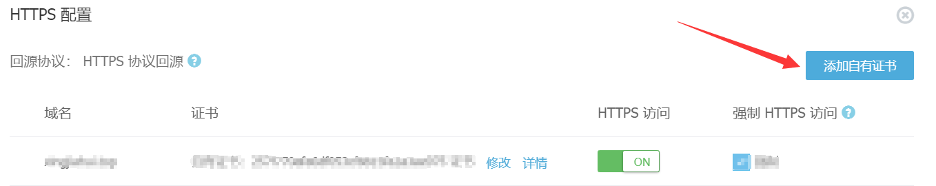 pem和key点击保存后,按照上图打开HTTPS访问按钮并打开强制HTTPS访问。 -