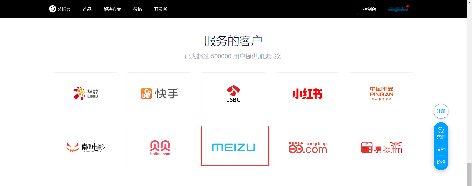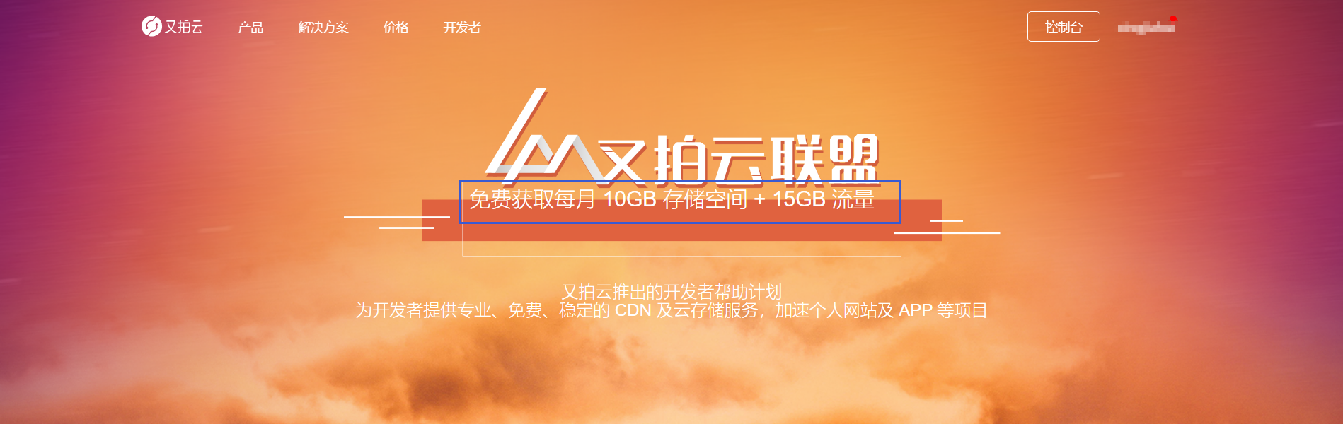 进入又拍云联盟官网,看下图蓝框好像满满的诚意,可我总感觉不够用: