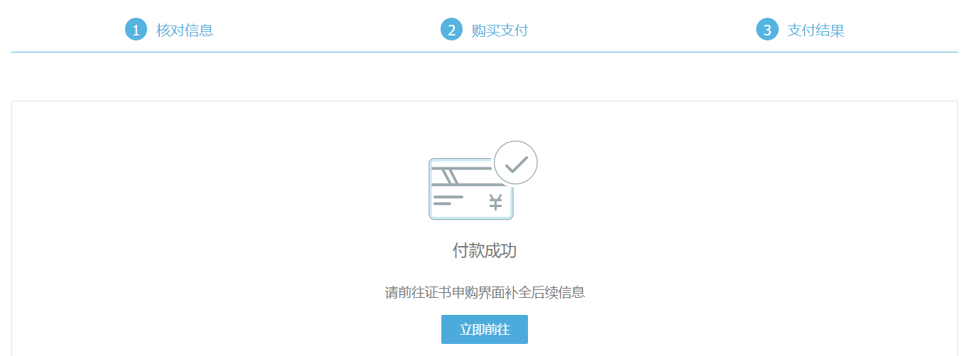 确认购买->确认支付(短信验证码)->支付成功->立即前往: