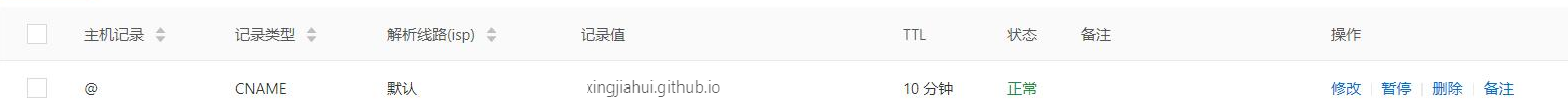 xingjiahui.top,网站部署在GitHub上,添加解析记录如下图(图是我p的):