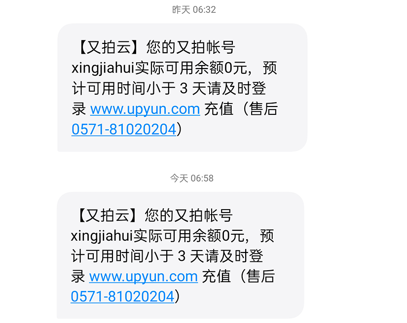 昨天没管它,以为代金券余额足得很,今天去又拍云后台看了下: