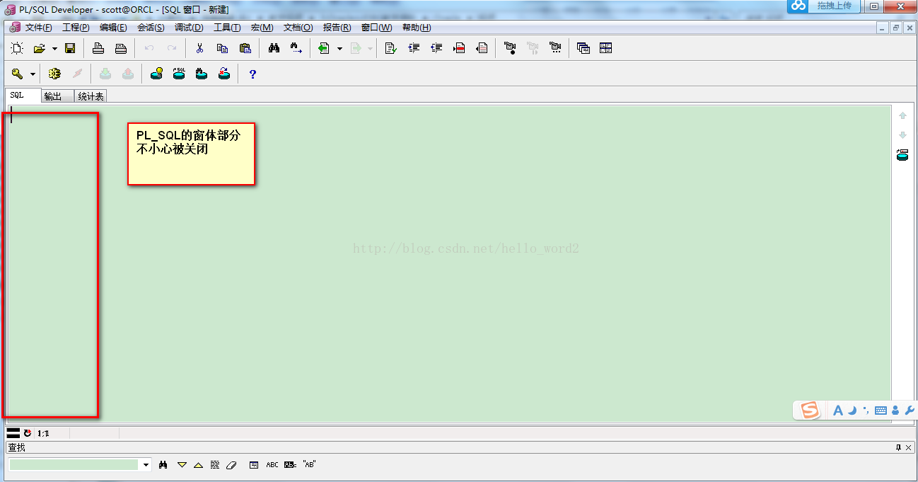 对于初学者来讲,使用PL/SQL时会不小心将窗体关闭,如下图