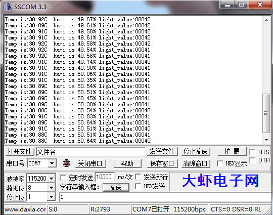 PS:期间遇到一个小问题就是光照强度一直显示255,原因肯定是代码有问题。