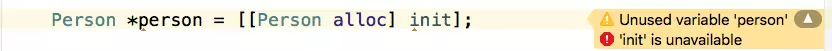 作用:告诉编译器该方法不可用,如果强行调用编译器会提示错误。比如某个类在构造的时候不想直接通过init来初始化,只能通过特定的初始化方法,就可以将init方法标记为unavailable。
