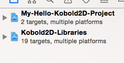 然后使用 xcode 打开 Kobold2D.xcworkspace,你会看到工程结构