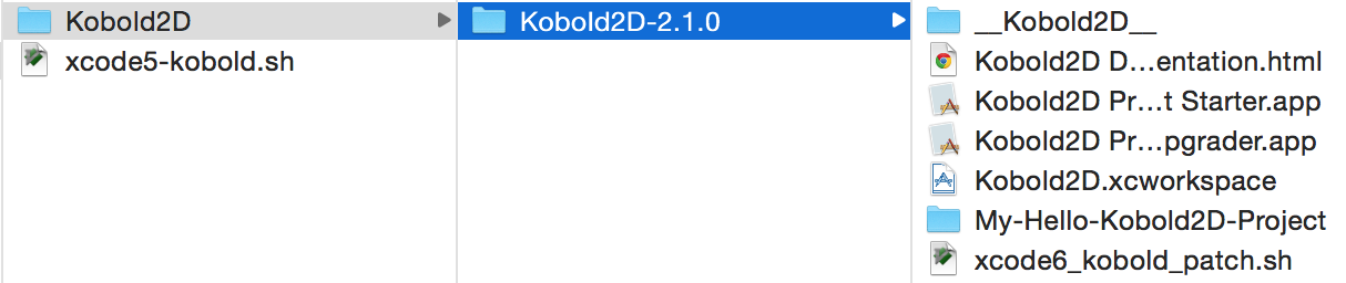 完成之后,在你的 home 目录会有一个 Kobold2D 目录.