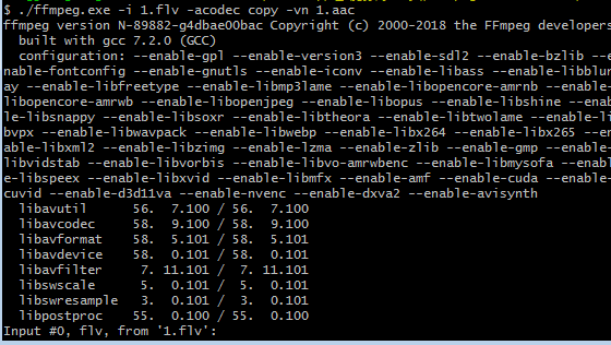 1、从flv文件中分离aac文件: