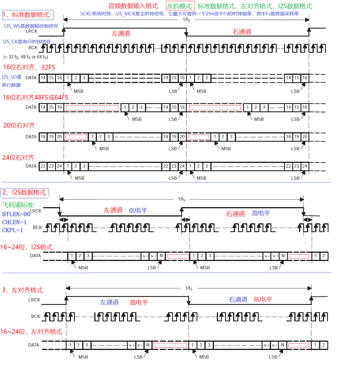 I2S_MCK是主时钟信号,它最大可提供一个256倍于Fs的时钟频率,其中Fs是音频采样率;