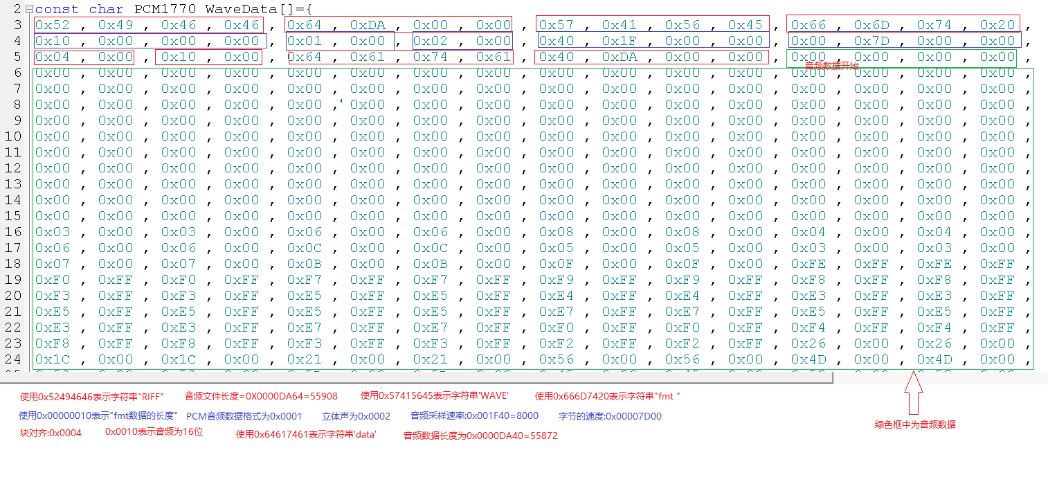 #define AUDIO_DATAID 0x64617461 //使用0x64617461表示字符串'data'
