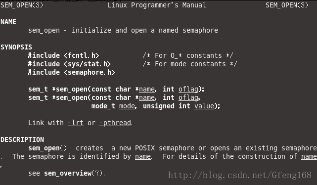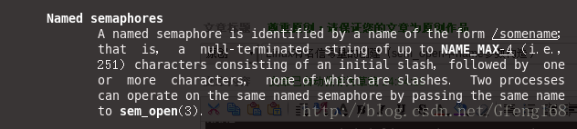 no such file or diratory 的错误。我$ man 3 sem_open了下,如上图。发现name参数的构造的详细介绍需要sem_overview(7) 中。(看到这我就可能是像消息队列类似了)