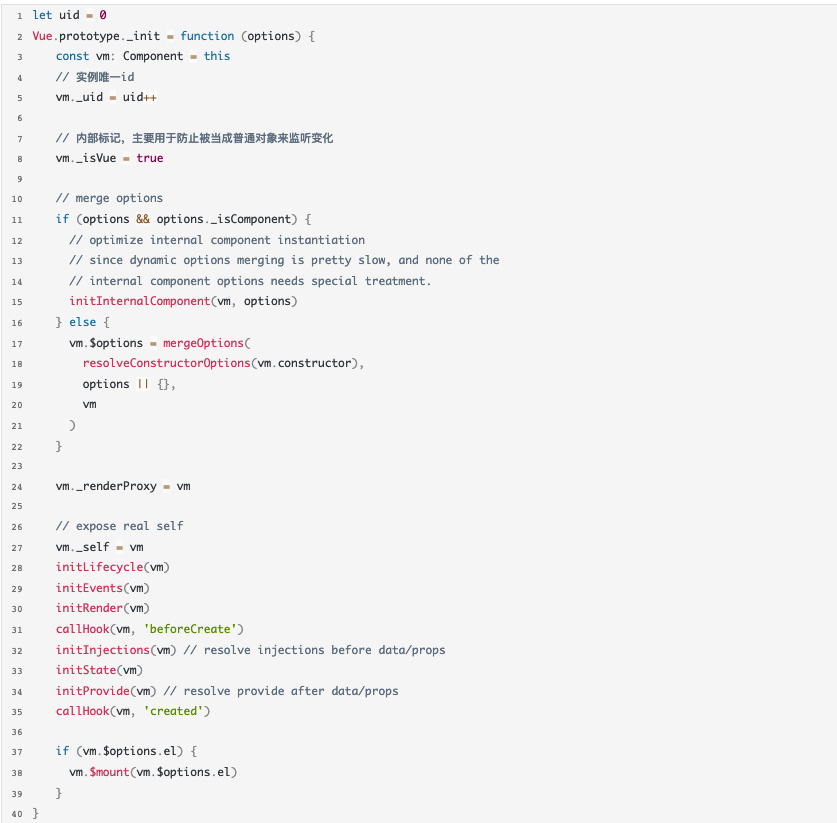 当调用 new Vue() 时,就会产生一个 Vue 实例,并调用_init() 方法。
