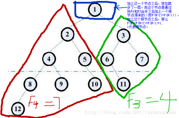 要构造一棵N层的平衡二叉树,则只需加入一个根节点,其左右子树分别(N-2)层和(N-1)层的树即可 。由于两个子树都是最少结点的,所有N层的也是最少结点的。