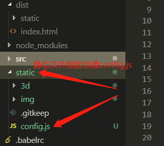 1.在项目中找到static文件夹,在里面创建一个配置文件,起名为config.js