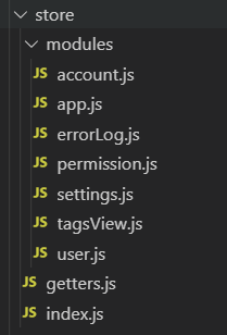 1、modules文件夹中存放的是各个模块的状态,因此我们可以新建一个account.js来存放该页面的状态。