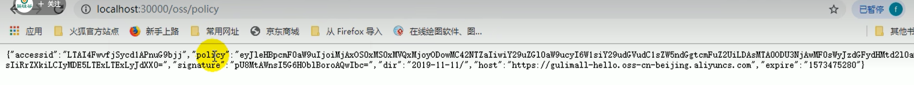 7.3.9、启动网关、测试获取oss签名请求