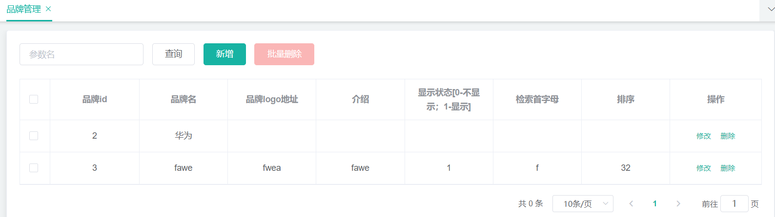 注意:现在没有添加表单校验,新增时表单有非法输入会失败,例如状态设为汉字。