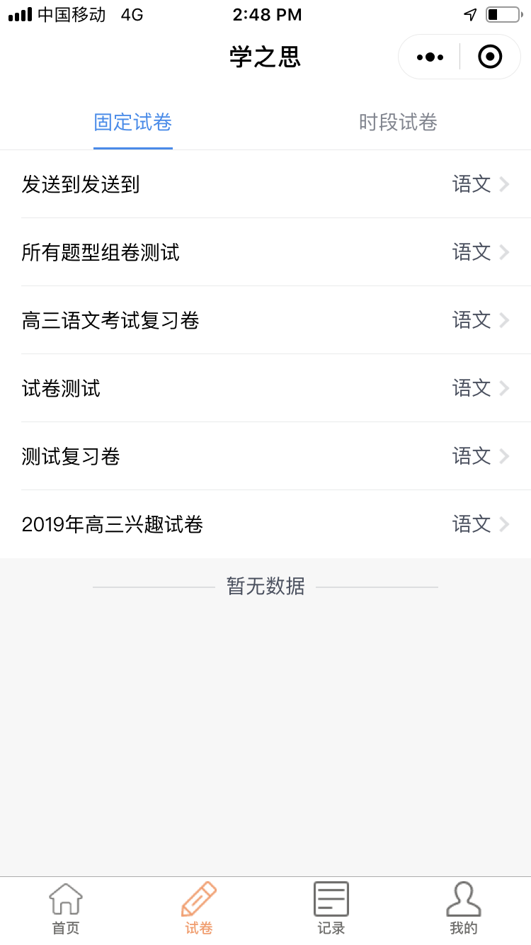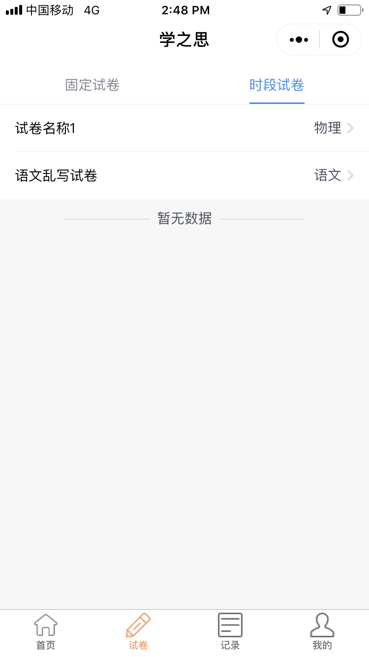 | 时段试卷 | 在时间限制内,可重复练习、自行批改的试卷 |