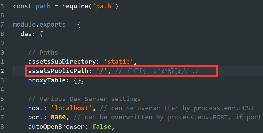 1.编译前注意事项,打开项目根目录,找到 config/index.js,然后打开,在下图中把