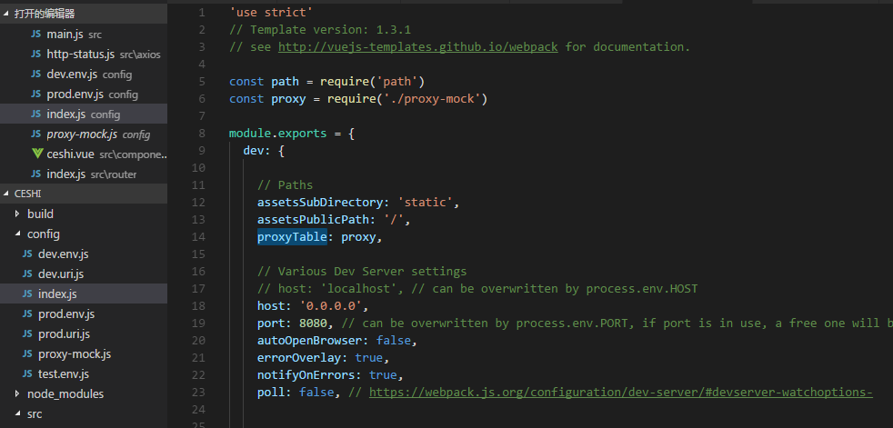 前面将项目页面、axios、组件等都准备好了,现在就差设置代理了: