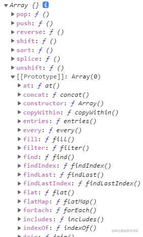 methodsNeedChange.forEach(methodName => {// 备份原来的方法const original = arrayPrototype[methodName]// 定义新的方法// 注意此时并没用执行下面的function 只是给arrayMethods这个空对象添加方法而已def(arrayMethods, methodName, function () {// 恢复原来的功能const result = original.apply(this, arguments)// console.log(arguments)// ob.dep.notify()return result// console.log(arguments)}, false)