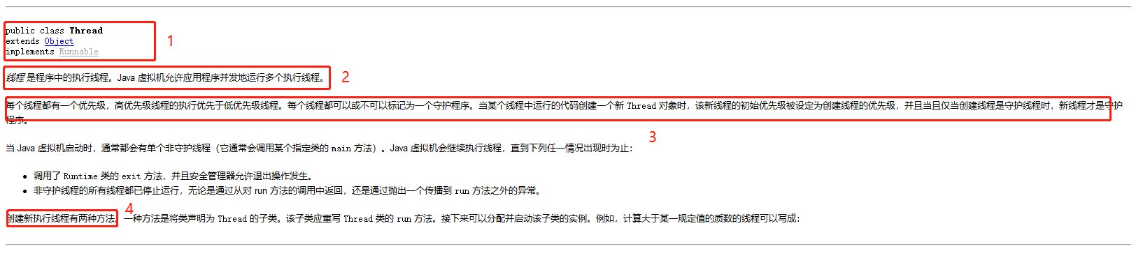 我们去看下Thread源码中的执行方法(还是先看帮助文档,在去研究源码中的具体方法):