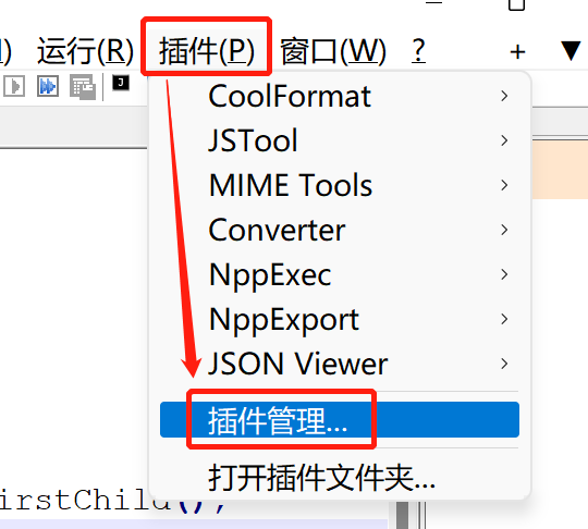 1.在“插件'菜单下打开插件管理器(Plugin Manager)