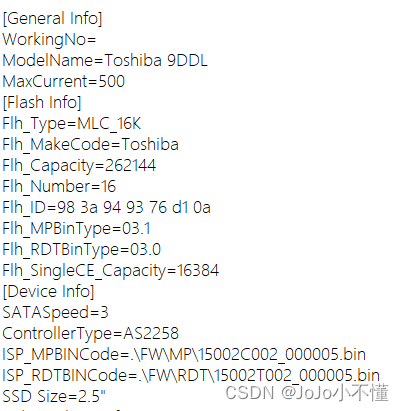 在INI_files文件夹内创建 ini_Toshiba(98) 文件夹,将ini_SanDisk(45)文件夹内的 【SanDisk_15nm7DDL_45 3a 94 93 76 D1 08.INI】 (这里自己找最接近自己ID的颗粒信息,东芝和闪迪就是开头不同而已),找到之后将文件复制到我们刚刚创建的文件夹,改名为 【Toshiba_15nm9DDL_98 3a 94 93 76 D1 08.INI】 ,打开文件,进行如下修改,主要是改ID,其他随意。我用的开卡软件是从量产部落下载,这里软件已经很强了。