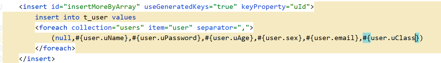 将语句中的#{user.uClass}改为null 和 user.uClass本就为null,