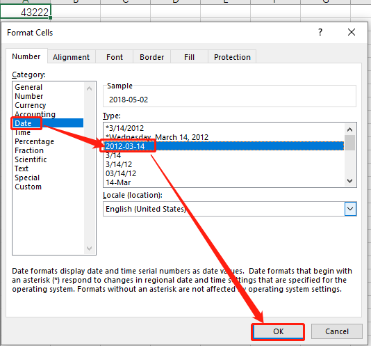 选择需要的日期格式,点击ok即可