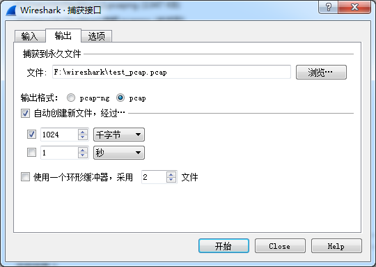 可以在“菜单栏----捕获----选项----输出”窗口进行配置,指示wireshark直接将捕获结果保存为文件。