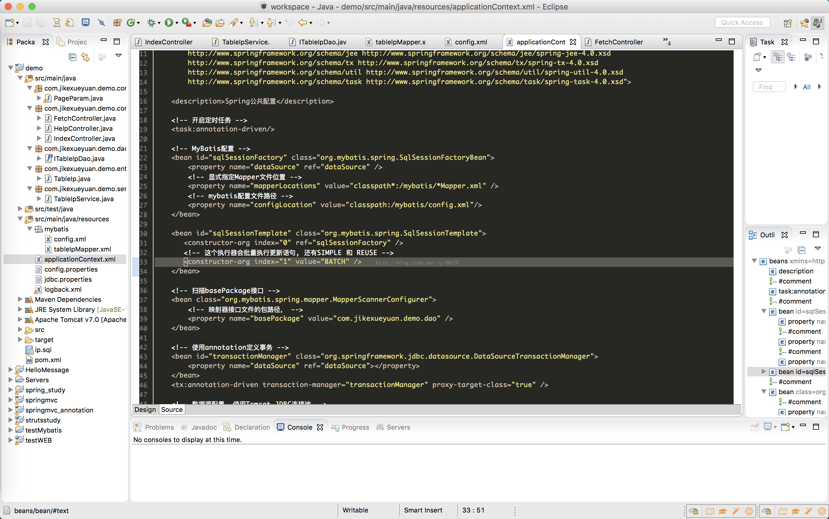 1:首先在配置文件中加入配置文件,其中mybatis的如下进行加载: