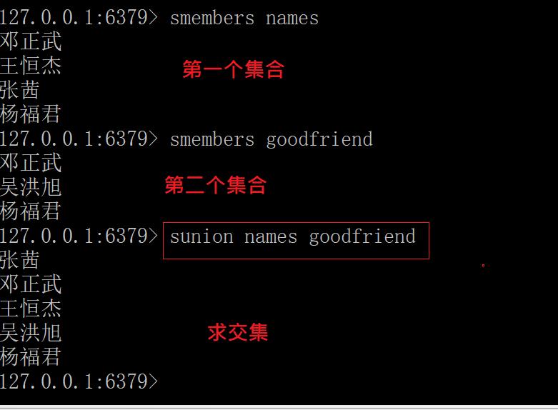 - (9)sdiff:去掉第一个集合中其它集合含有的相同元素 (不会操作原始集合元素)