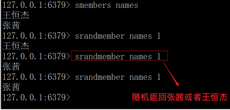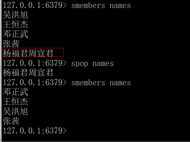 (4)spop:随机返回一个元素 并将元素在集合中删除