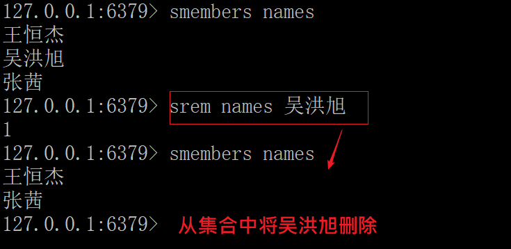 - (4)spop:随机返回一个元素 并将元素在集合中删除