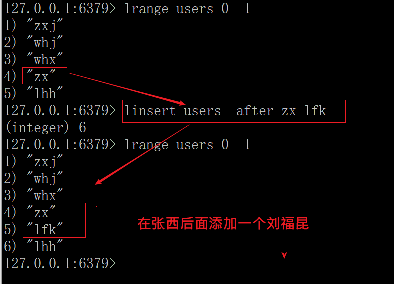 - (13)linsert、在某一个元素之前,之后插入新元素