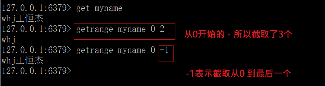 | getrange 索引0开始 | 截取value的内容(range:范围) |