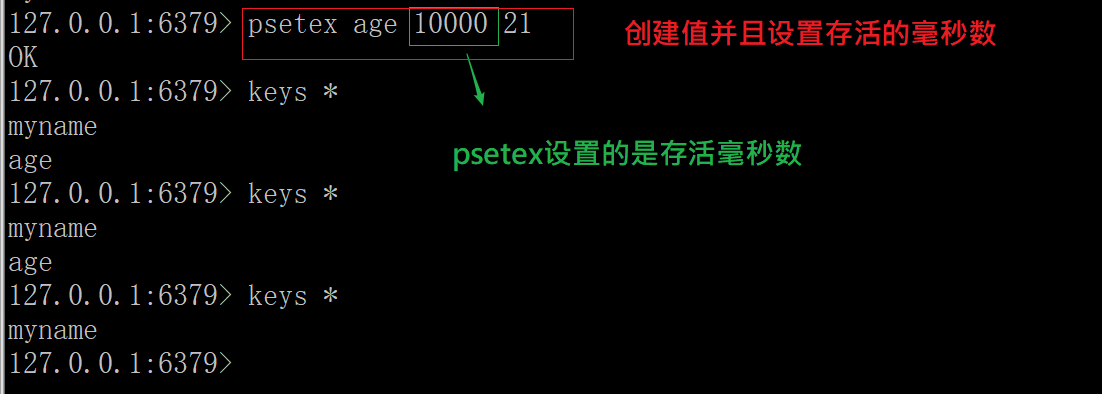 | psetex | 设置一个key存活的有效期(毫秒) |