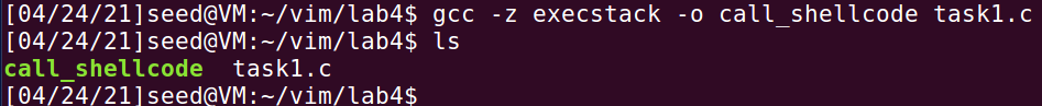 $ gcc -z execstack -o call_shellcode call_shellcode.c