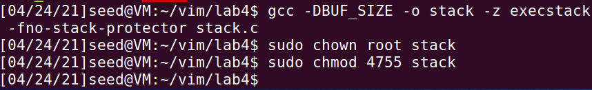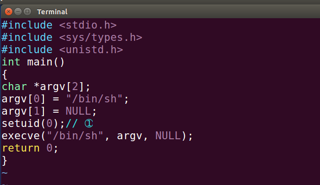 上述程序可以使用以下命令进行编译和设置(我们需要使其成为根拥有的Set-UID程序):