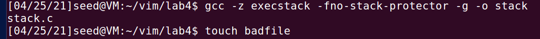 $ gcc -o stack -fno-stack-protector -z noexecstack stack.c