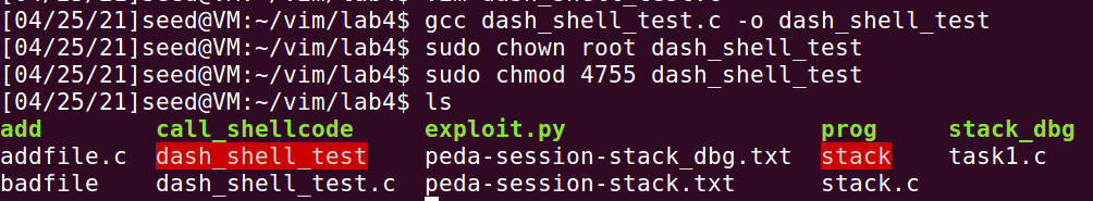 提升权限:sudo chown root dash_shell_test、sudo chmod 4755 dash_shell_test