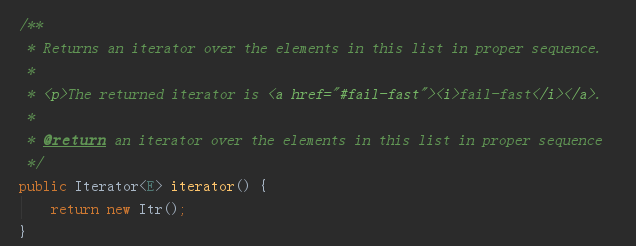 * ArrayList 重写方法 iterator(),返回了Iterator接口的实现类的对象